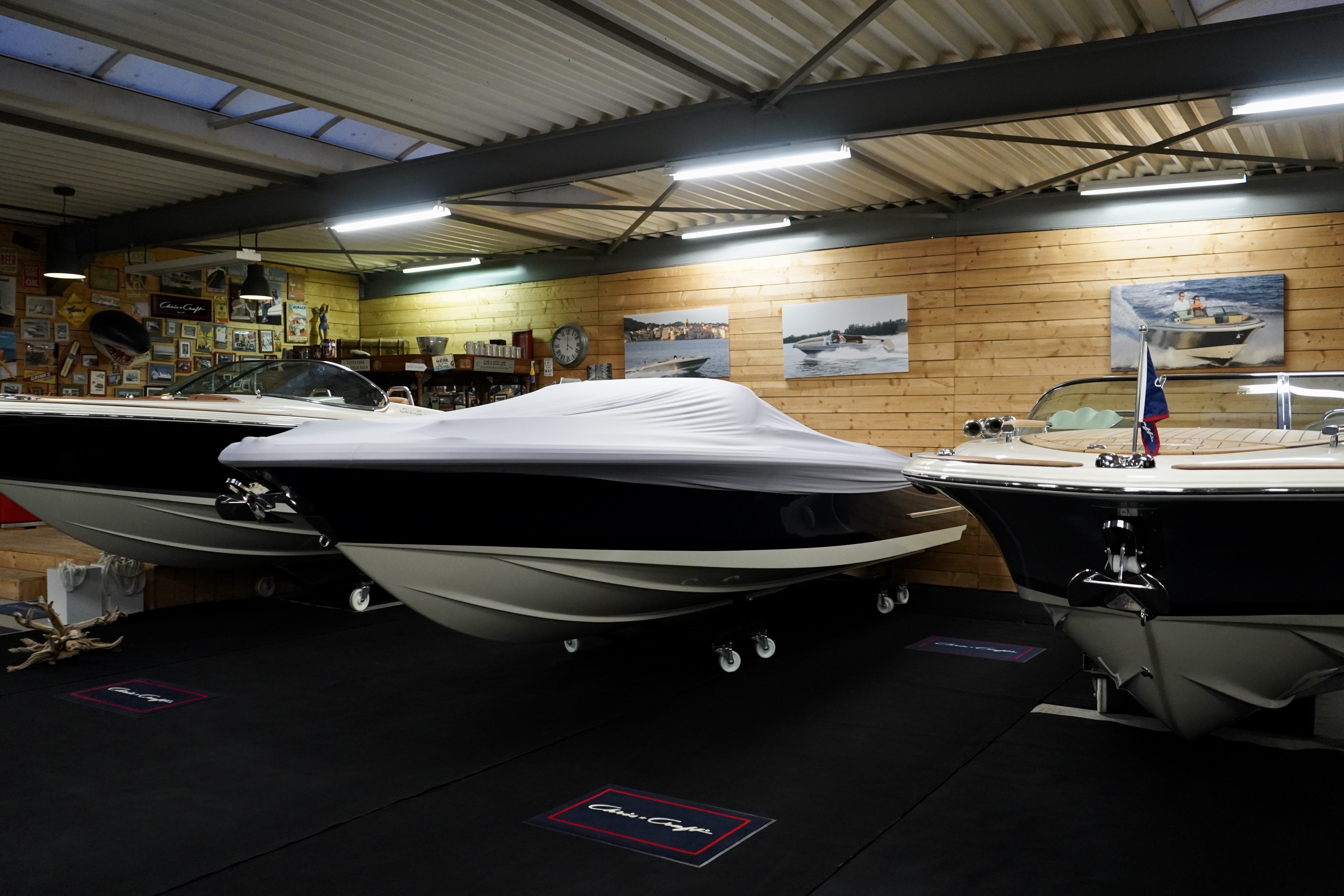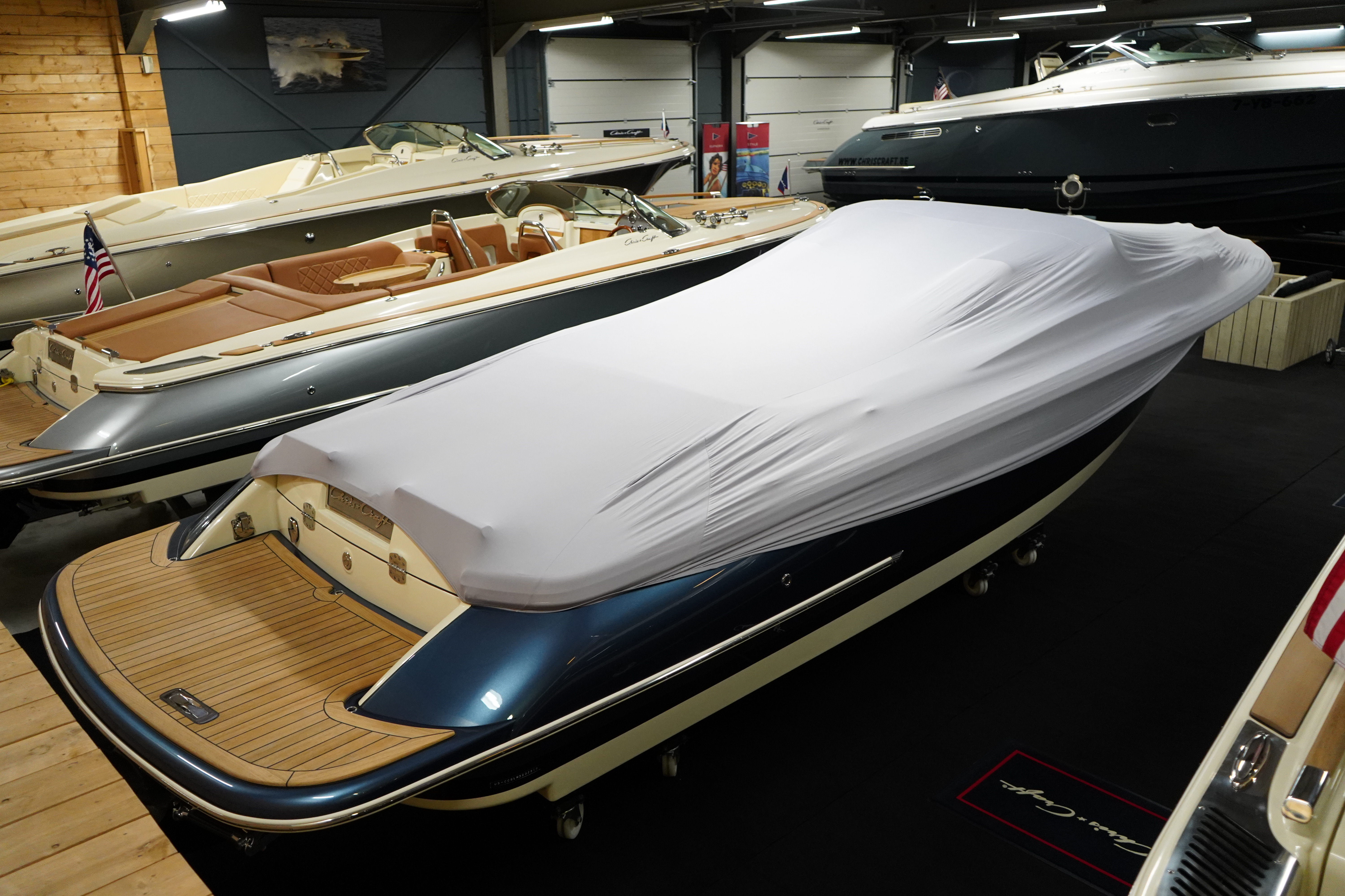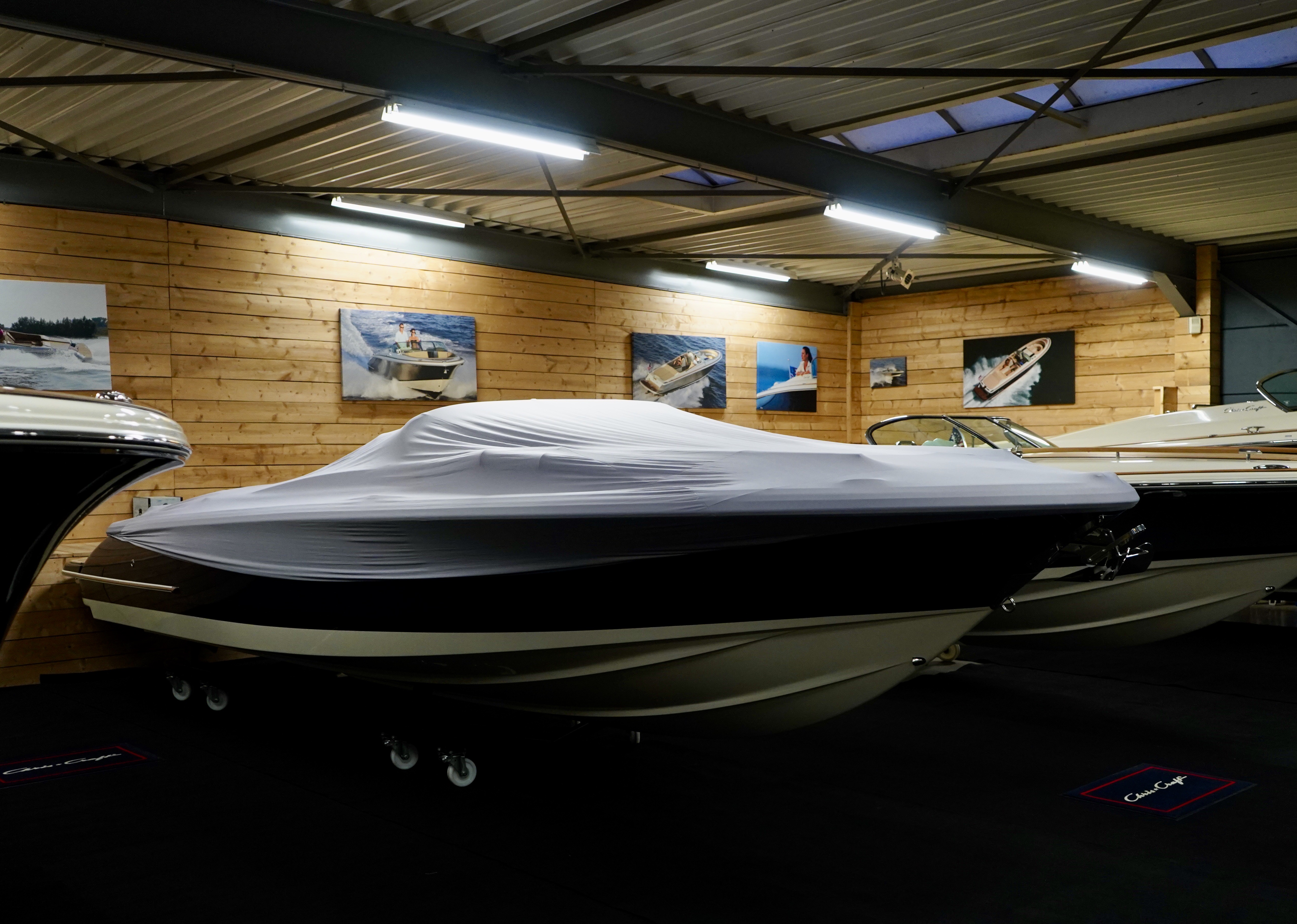 Afdekhoes van stof om de boot stofvrij te houden.